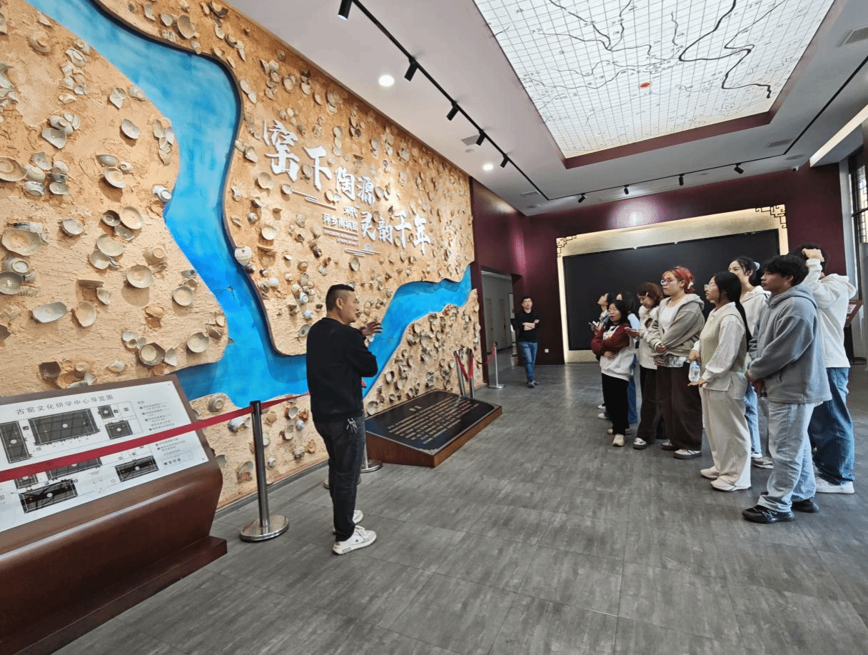 午后,队伍前往南坑窑下研学基地,开启古窑文化与乡村振兴的探索。在古窑遗址与瓷文化展厅,成员们聆听了窑下瓷业从宋元至今的发展历程,感悟非遗传承中“坚守初心、精益求精”的工匠精神;听讲解老师分享了拉坯、彩绘的环节,大家在专业老师介绍下游览了陶瓷在窑下村的发展历史,思考“工匠精神与党员担当的共通性”。