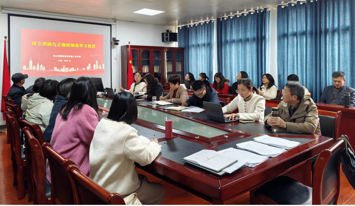 为深入学习贯彻党的二十届四中全会精神,扎实推进树立和践行正确政绩观学习教育,规范开展组织生活,3月17日下午,萍乡学院教育学院教工党支部在党员活动室3247召开理论学习与组织生活会系列活动,全体教工党员参加。会议由教工党支部书记雷莹子同志主持,活动紧扣理论学习、组织生活会、民主评议党员三大核心内容有序推进。