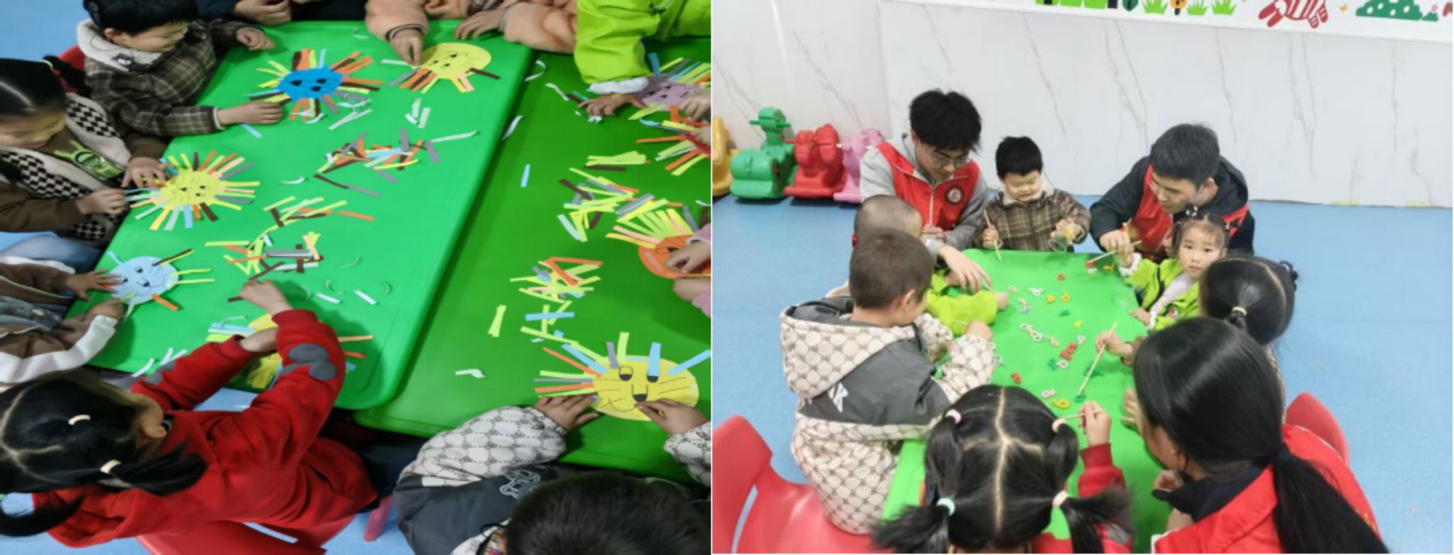 活动中,支部成员结合学前教育专业特色,为孩子们精心设计了一系列适配其发展需求的趣味环节。“拆糖果,包糖果”手眼协调游戏锻炼孩子手部灵活度;“给小狮子做头发”手工活动培养精细动作与创造力;“钓鱼”游戏提升专注力,“小动物来了”体能游戏则让孩子们在轻松互动中增强肢体协调性。志愿者们恪守专业陪伴原则,全程使用肢体示范、口型提示等适合孩子们的沟通方式,平等尊重每一位孩子,耐心鼓励、积极引导,根据孩子的实际情况灵活调整活动难度,用温柔与用心搭建起心灵沟通的桥梁,让孩子们在欢乐的互动中收获陪伴与成长。
