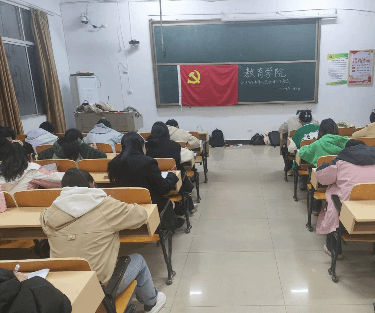 为切实检验教育学院第二十三批入党积极分子的理论学习成果,2025年11月6日,教育学院学生党支部在英华楼3206教室举行第二十三批入党积极分子培训结业考试。本次考试由教育院学生第一党支部书记吴桂芳老师组织,徐莎莎等3位同志负责监督,童林梅、邱仕儒等50名入党积极分子参加。