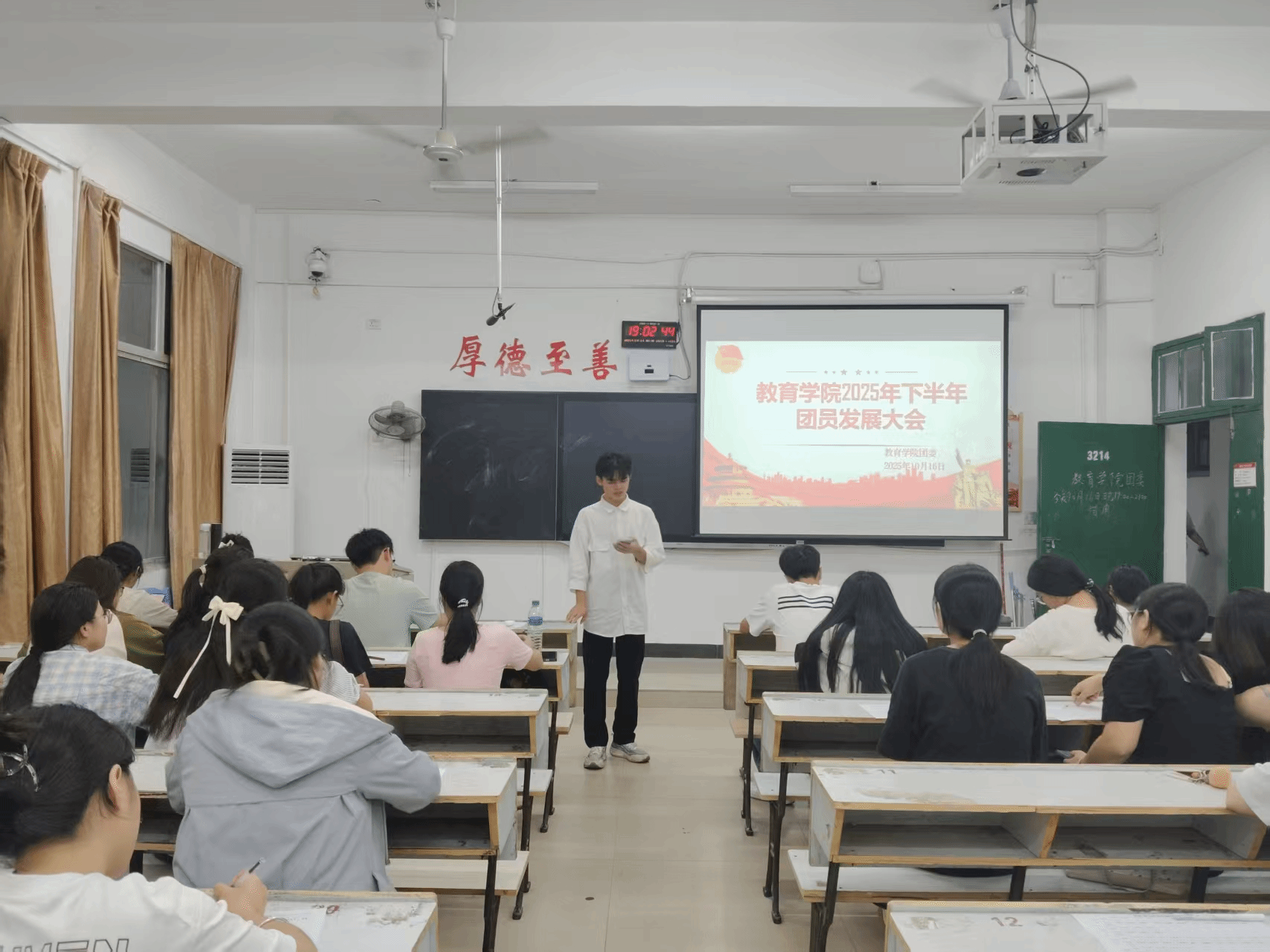 为进一步加强团组织建设,提高团员发展质量,推动共青团事业发展,教育学院于2025年10月16日19点在英华楼3214教室开展教育学院2025年下半年团员发展大会。本次会议由团委书记助理郑梁奇主持,部分学生干部、团员和群众共同组成的民主投票小组共同参加。