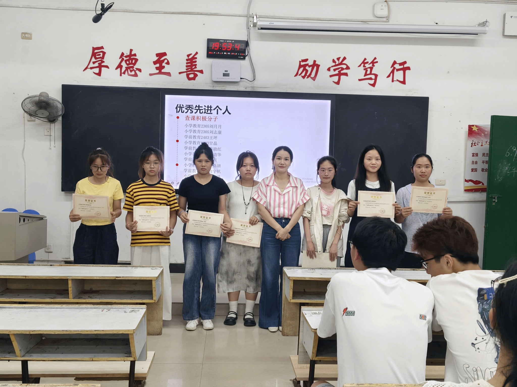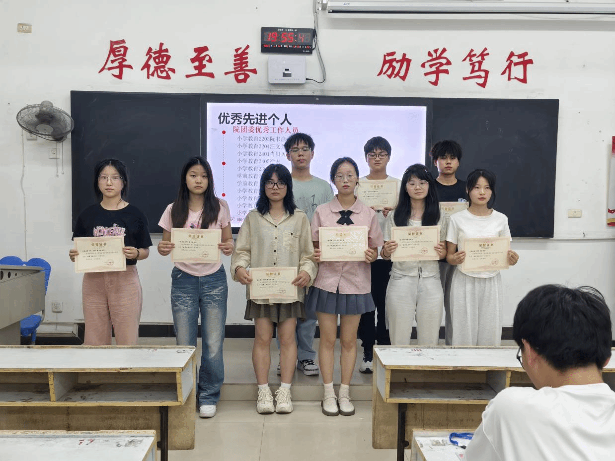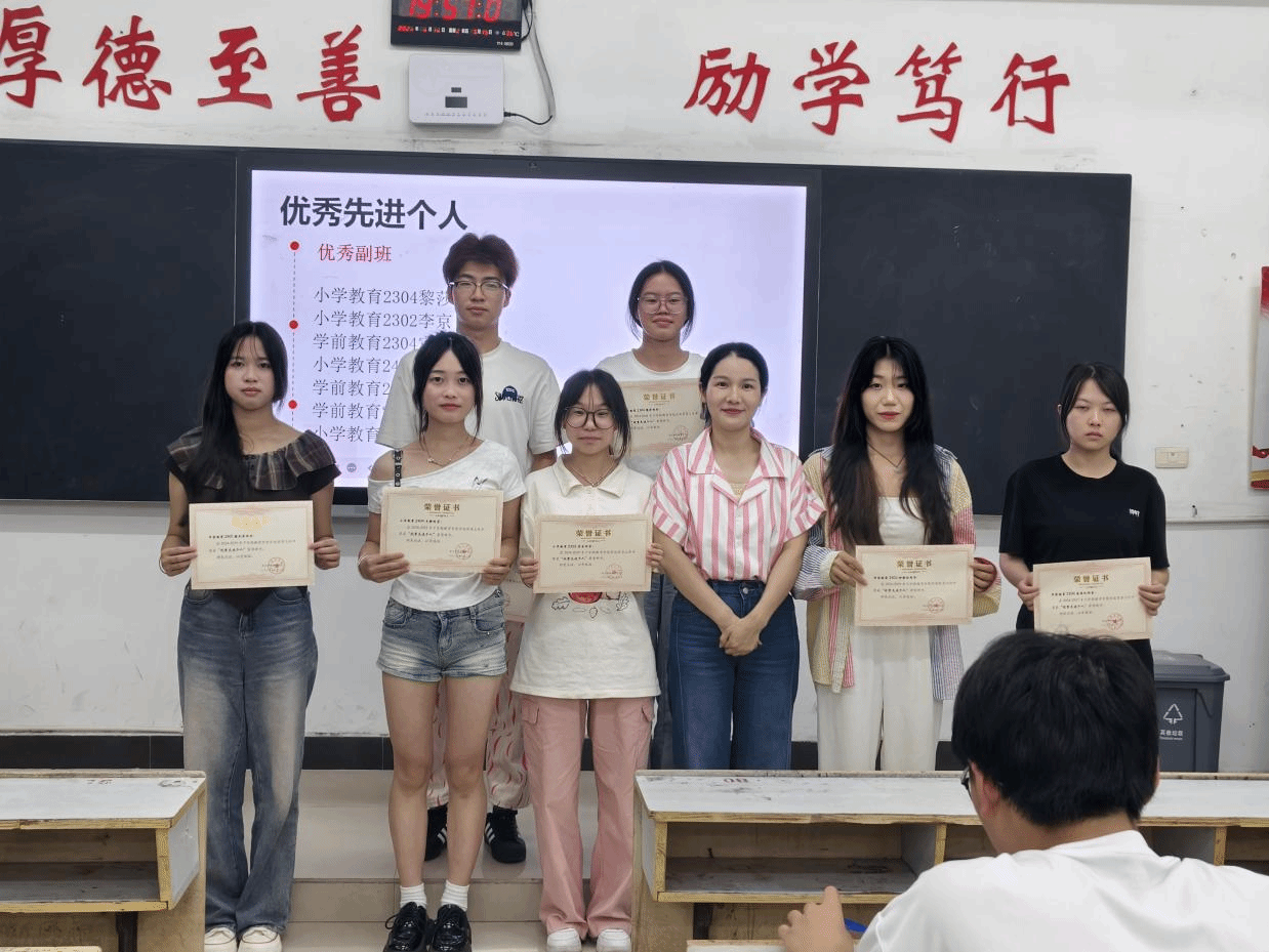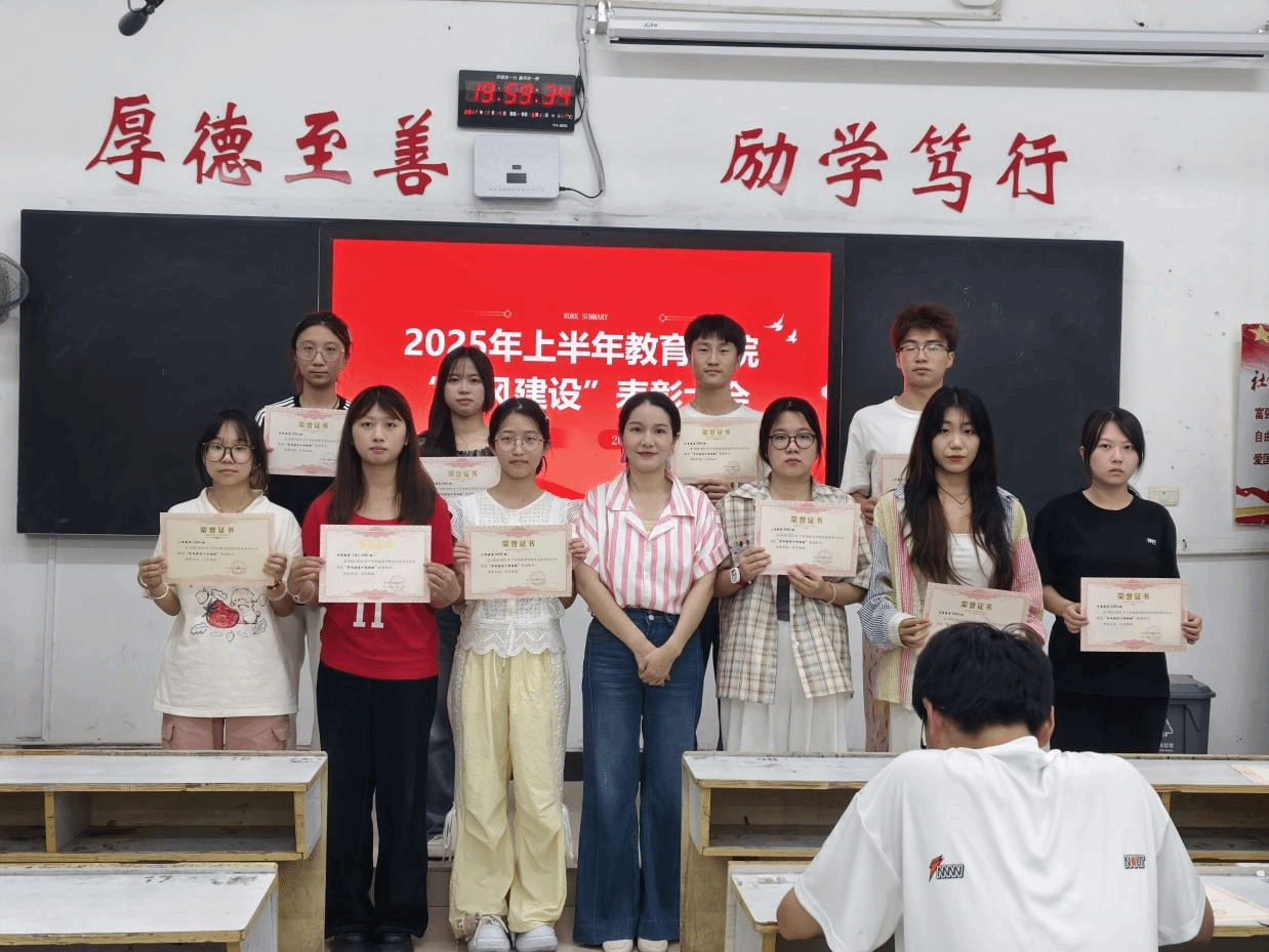 2025年6月10日晚7点半,教育学院在英华楼3214教室隆重召开2025年上半年“学风建设”表彰大会。本次大会总结本学期教育学院在督导建设方面取得的成就,并对表现突出的个人和班级进行表彰,进一步推动学校学风建设,营造良好的学习氛围。