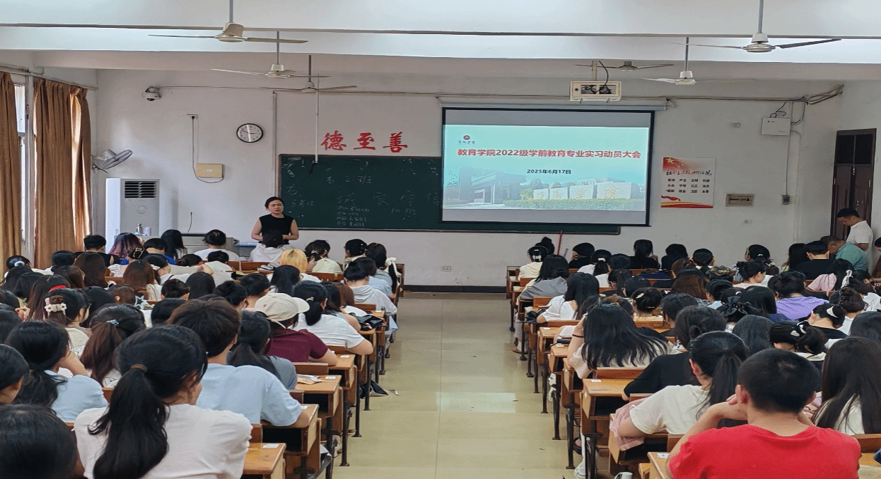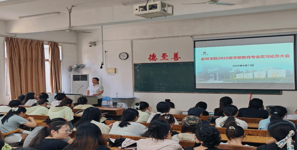 2025年6月15日,萍乡学院教育学院在英华楼106隆重召开2022级学前教育专业实习动员大会。本次大会旨在为即将踏上实习岗位的学前教育专业学生明确实习目标、强调实习纪律,并提供全面的指导与支持。出席大会的主要领导有教育学院党委书记阳学文、副院长张园园、实践教学主任刘文琴以及2022级学前教育专业的全体学生和辅导员参加了此次动员大会。