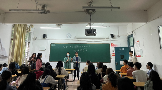 跬步楼前的招聘会现场秩序井然、人头攒动,招聘位前都挤满了我院咨询的学生,热烈的气氛还吸引了许多我院非毕业班的学生驻足聆听,提前了解企业招聘流程和要求。在同学们的积极报名下深圳市宝安区新城幼儿园收到近百余份报名信息。学生们依次填好面试表格与信息后,同深圳市宝安区新城幼儿园在四如楼8101教室进行进一步的招聘单位与面试要求说明。招聘单位通过播放宣传片、PPT展示、面对面交流等方式向同学们介绍了单位的基本情况、人才需求以及薪酬待遇。接着,报名的同学以四人一组的方式进入招聘单位准备好的面试教室进行面试。毕业生们皆表示做好了充足准备迎接招聘单位的挑战。