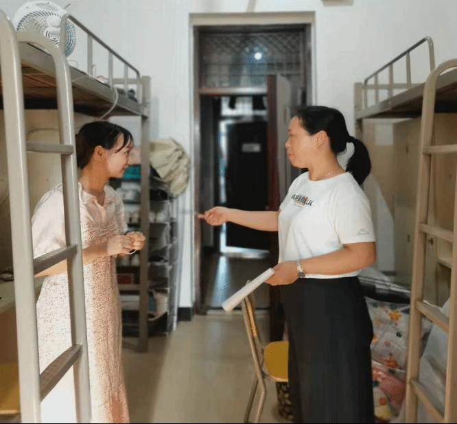 为帮助新生们更好地适应大学生活,2021年9月11日上午,学前教育学院教工党支部书记阳学文老师在学生会成员的陪同下于18栋女生寝室开展教师下寝活动。