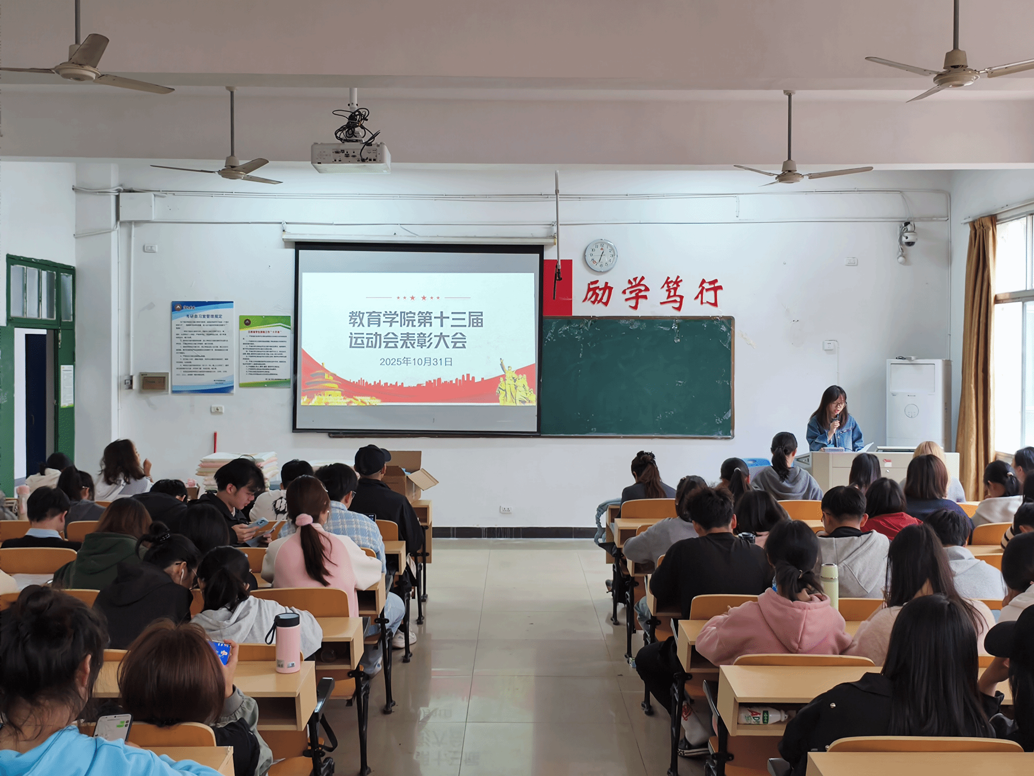 为弘扬拼搏精神,激励全院学子积极参与体育锻炼,2025年10月31日中午12时50分,萍乡学院教育学院在英华楼3212教室隆重举行了秋季运动会表彰大会。