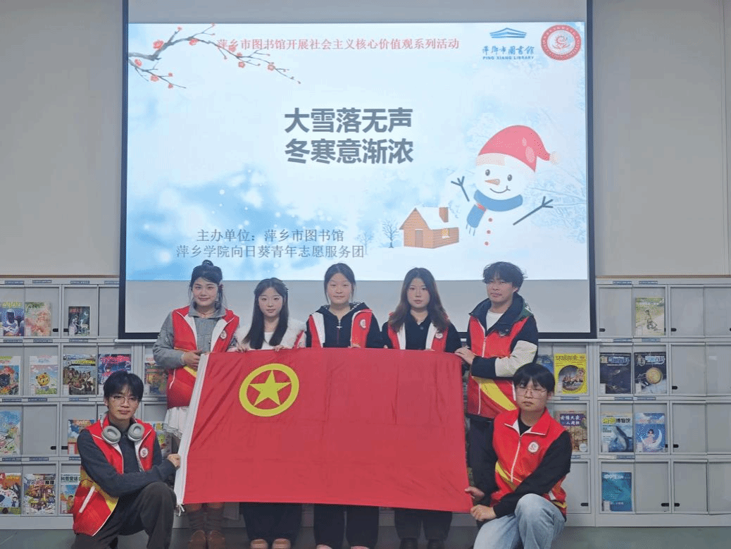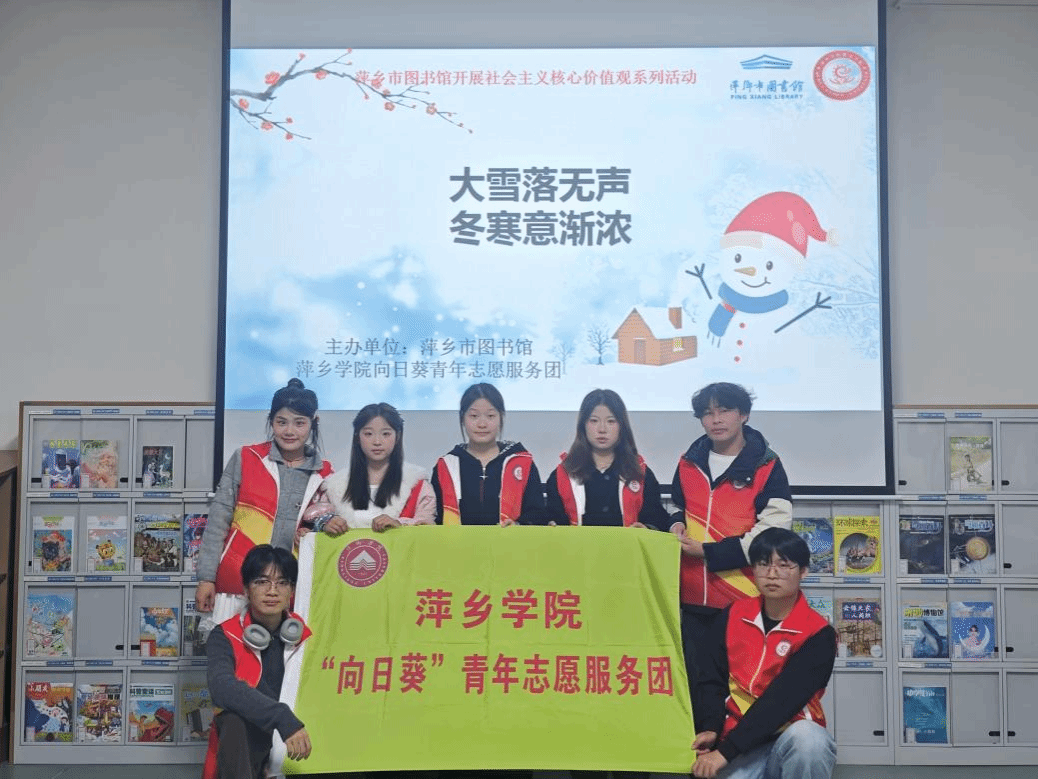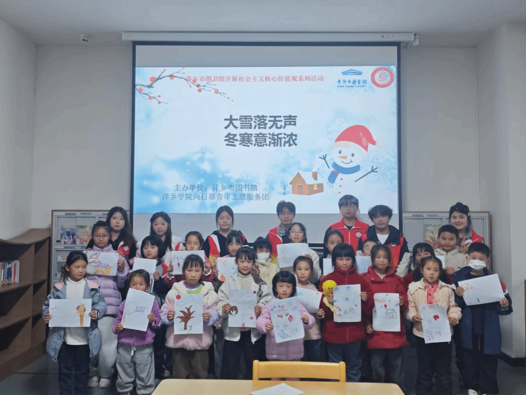 12月6日下午,萍乡市图书馆内暖意融融,欢声笑语不断。萍乡学院“向日葵”青年志愿服务团在此举办了一场以“冬寒意渐浓,大雪落无声”为主题的志愿服务活动。此次活动旨在通过绘本阅读和互动游戏,引导儿童感知自然节律,领略传统节气“大雪”的文化内涵。
