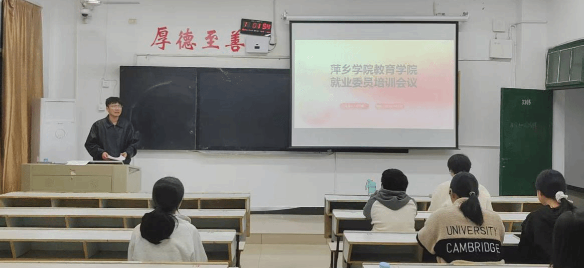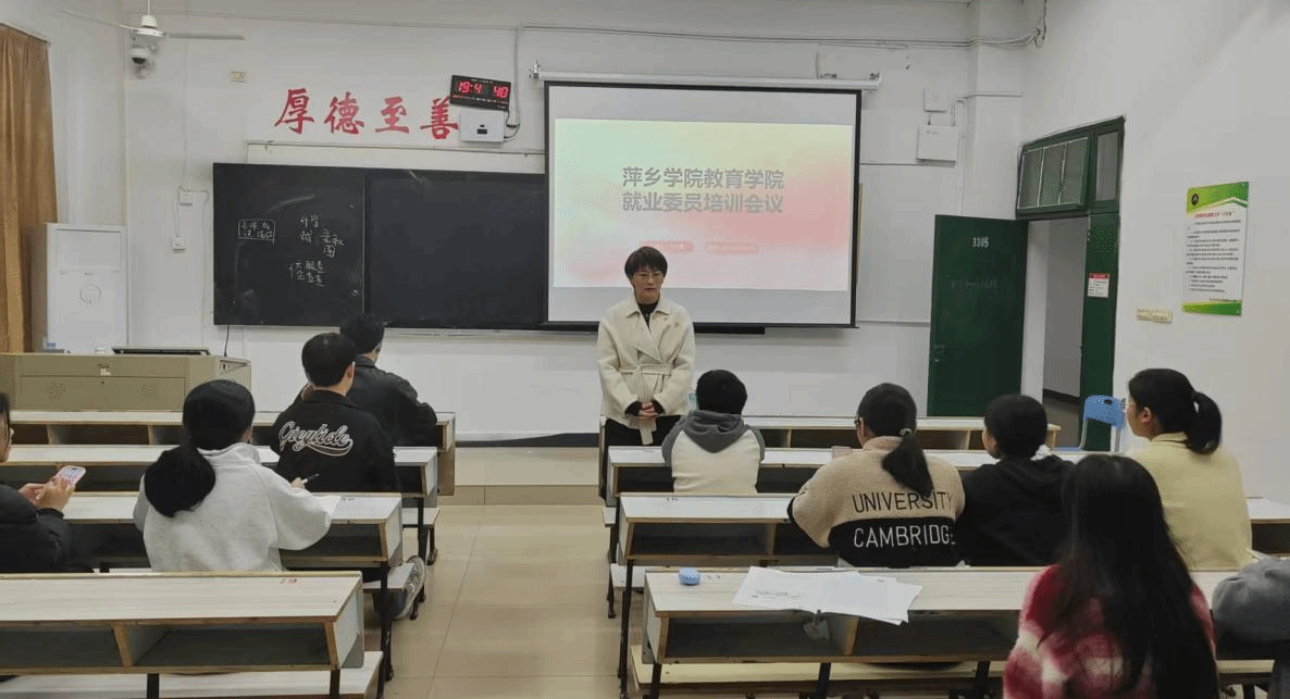 为精准部署2026届毕业生就业工作,提升各班就业委员实务能力,2025年11月13日,教育学院在英华楼3305教室组织召开就业委员专题培训会。教育学院党委副书记郑娟、辅导员宋宇鑫出席会议并进行工作指导,全体毕业班就业委员参加,会议由宋宇鑫老师主持。