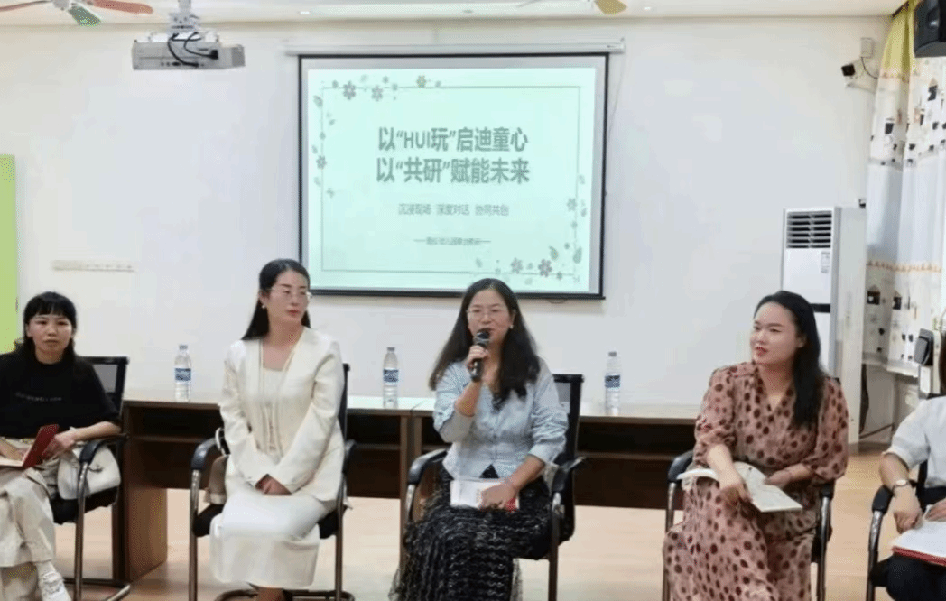 在文丽芳总督学温暖而有力的致辞中,活动正式拉开帷幕。她指出,这样的联动教研正是推动学前教育高质量发展的创新实践,徐海燕副院长也从高校角度阐述了协同教研的价值与期待。高校专家团队深入活动一线,分组观摩户外运动游戏和区域活动。孩子们在 “HUI 玩 +” 课程中自由探索、快乐奔跑,展现了安源镇幼儿园省级课题研究实践成果。专家们用笔记录、驻足观察,捕捉教育瞬间。观摩结束,带班教师分享实践感悟,高校专家给予专业点评。现场教师踊跃提问,专家耐心答疑,双方围绕 “如何更好地支持幼儿发展” 展开理论与实践交融对话,碰撞出智慧火花。