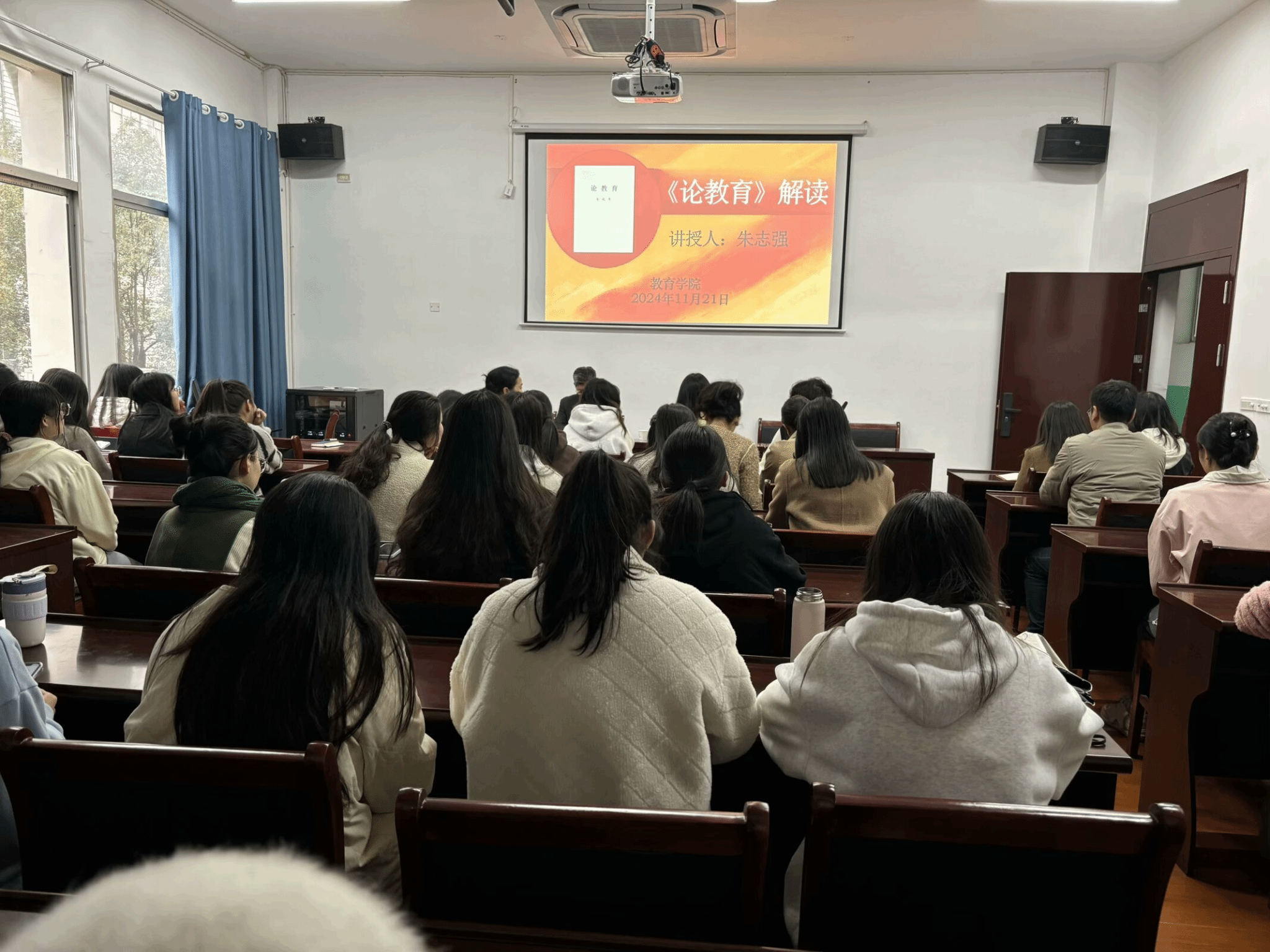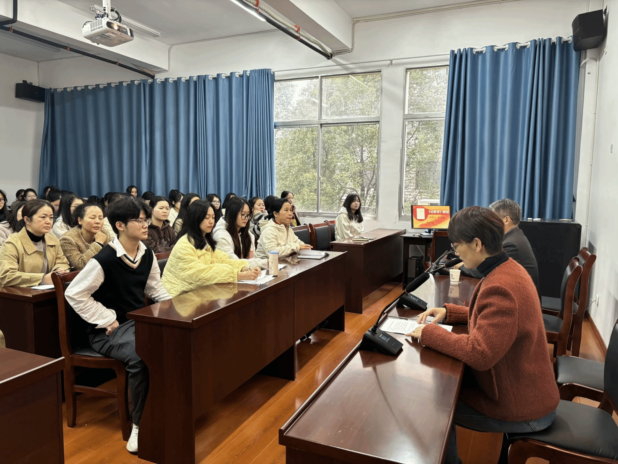 在这次的讲座中,讲授人朱志强深入浅出地解读了《论教育》的出版背景、主要内容、篇目学习,带领大家更加深入地了解习近平总书记对教育的深刻理解。在31个重要篇目的学习中,穿插视频案例为大家生动解读,如张桂梅教师免费教育大山中的女孩并努力其送出大山等感人的事例,使在座各位更加深刻地领略到教育是民族振兴、社会进步的重要基石。