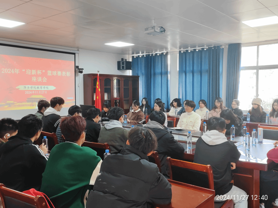 在前不久结束的比赛中,教育学院篮球队表现卓越,在多场关键赛事中展现出强大的团队凝聚力与顽强拼搏精神,取得了令人瞩目的成绩。为了对在比赛中表现突出的球员进行嘉奖,激励全体成员继续砥砺前行,11月27日,教育学院在英华楼3247召开2024年“新生杯”篮球赛表彰座谈会,学院党委副书记郑娟、教育学院团委书记欧阳群以及男篮女篮全体成员参加了本次会议,共同回顾球队比赛征程,见证荣耀时刻。