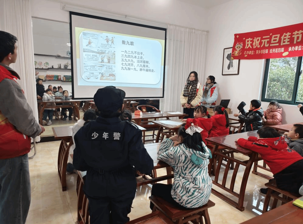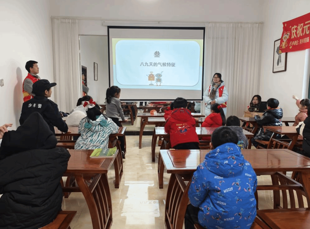 一走进精心布置的课堂,小朋友们就被志愿者们用生动的语言和简洁的故事所吸引。志愿者们详细介绍了数九文化的起源,从冬至开始,每九天为一个“九”,历经九个“九”,共计八十一天。小朋友们听得津津有味,纷纷举手提问,积极参与互动,现场气氛异常活跃。在志愿者的引导下,小朋友们还学唱了“数九歌”,清脆响亮的童声在教室里回荡,志愿者们巧妙地利用歌词,向小朋友们描绘了八九天独特的自然景象,让他们仿佛置身于那温暖的春日时光。