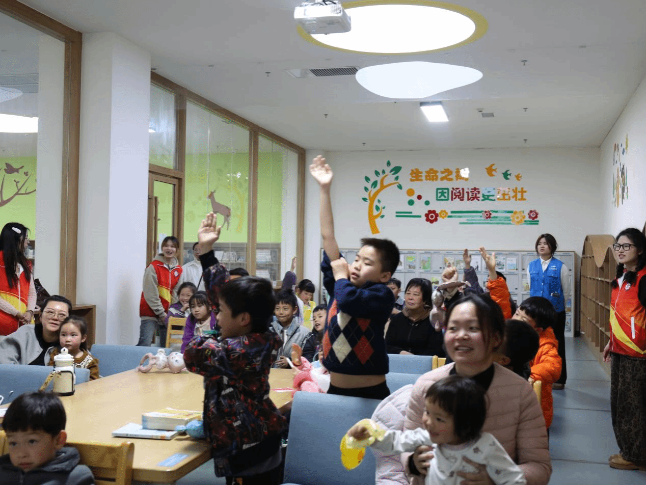 活动开始前,志愿者们将现场布置成充满春天气息的“清明小课堂”,吸引了众多家长和孩子的目光。教育学院的青年志愿者们以一首《清明》古诗吟唱拉开序幕。随后,通过《清明节的由来》动画短片,孩子们学到了寒食节的由来等传统文化知识。在《清明节》绘本环节中,志愿者们用生动的语言和形象的肢体动作,为孩子们讲述了艾饺、青团子、踏青、扫墓、拔节、抽穗、蹴鞠等相关内容。孩子们扑闪着亮晶晶的大眼睛,小脸蛋上写满了专注,沉浸在故事里,如痴如醉 。