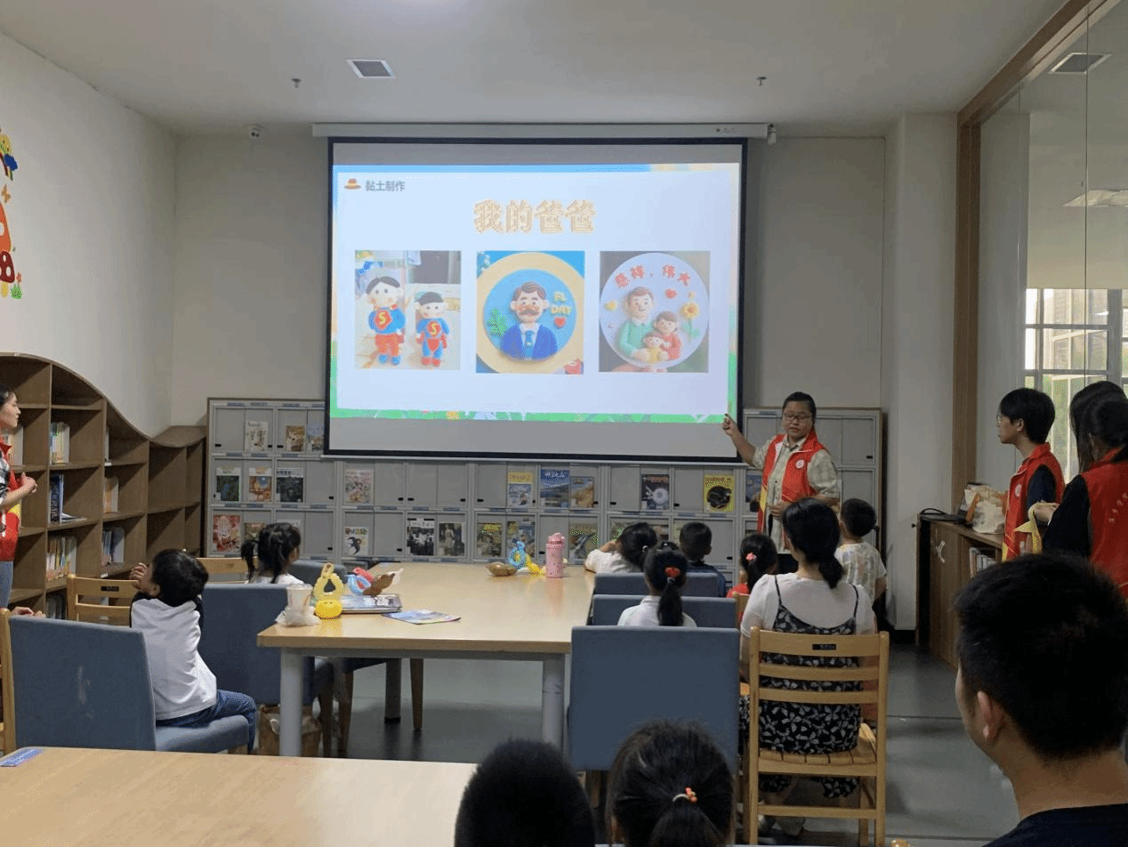 活动开始,主持人引导孩子们观看《我亲爱的爸爸》视频,并通过手势舞活跃现场气氛。在互动阶段,孩子们积极发言,不仅使孩子们了解了父亲节的起源与他国文化,更加深了对于父爱的理解。活动以绘本《完美的父亲节》为中心,讲述苏茜为父亲筹备节日的故事,展示制作贺卡、家庭野餐、趣味游戏等亲子互动场景。志愿者们鼓励孩子们思考如何表达感恩。提问环节,孩子们分享了为爸爸准备早餐、户外郊游等创意想法,活动现场充满温情。