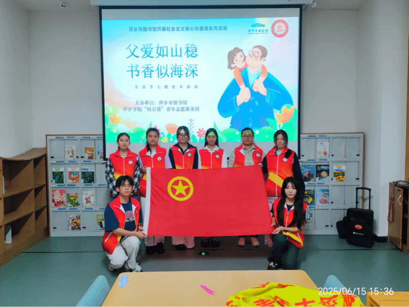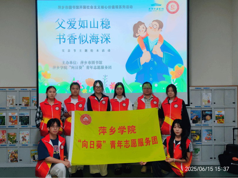 为弘扬中华民族孝亲感恩的传统美德,以儿童喜闻乐见的形式传递父爱温情,6月15日下午,萍乡学院“向日葵”青年志愿服务团在萍乡市图书馆开展了“父爱如山稳,书香似海深”主题绘本讲解活动。活动以父亲节为契机,通过绘本演绎、手工实践和趣味互动等形式,引导儿童感悟父爱的深沉与伟大,培养感恩情怀。