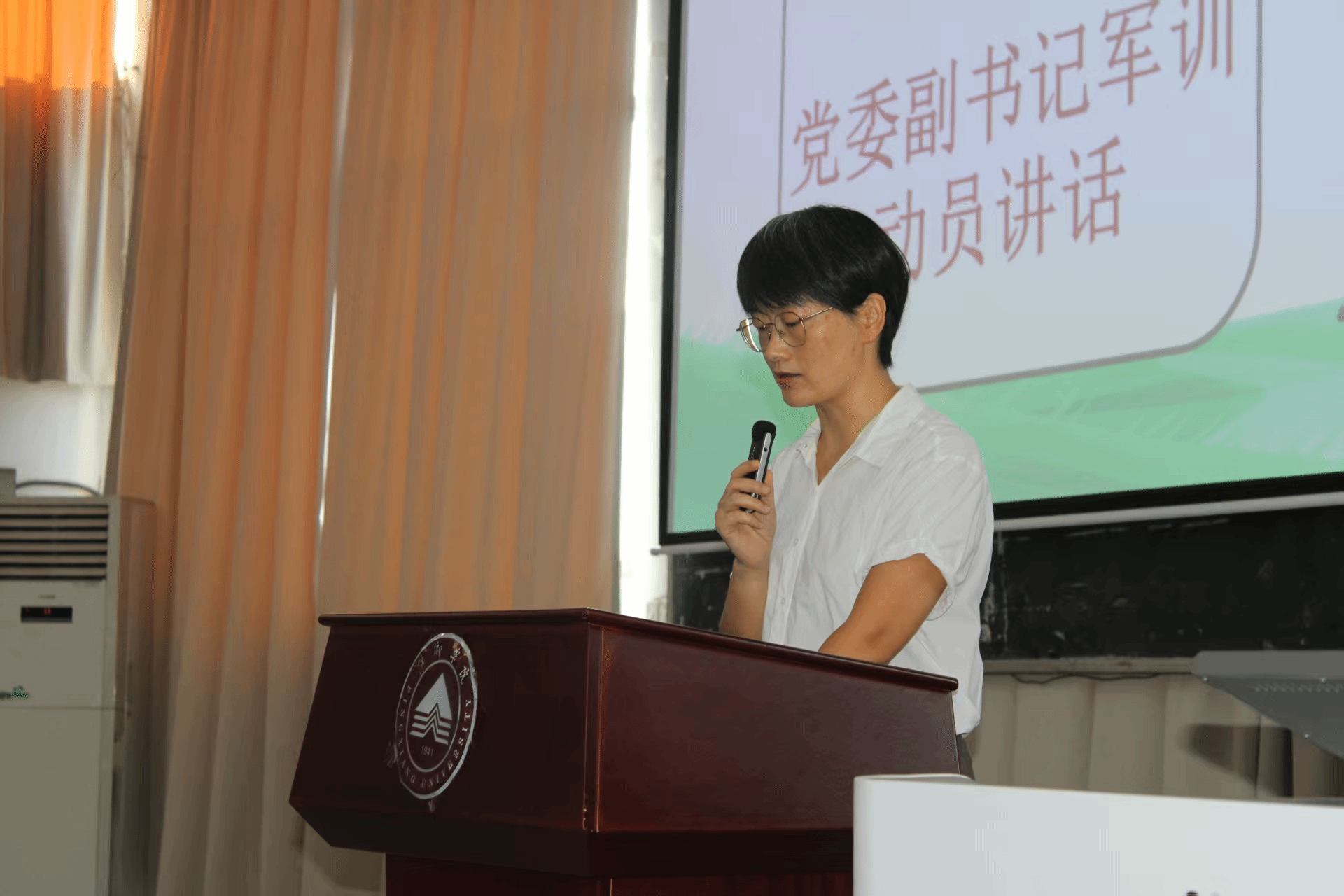 典礼中,学院党委副书记郑娟作军训动员讲话。她着重强调军训的重要意义,鼓励同学们在军训中磨砺意志、强健体魄、培育团队协作精神,希望大家以饱满热情和顽强毅力圆满完成军训任务,展现新时代大学生的昂扬风采。
