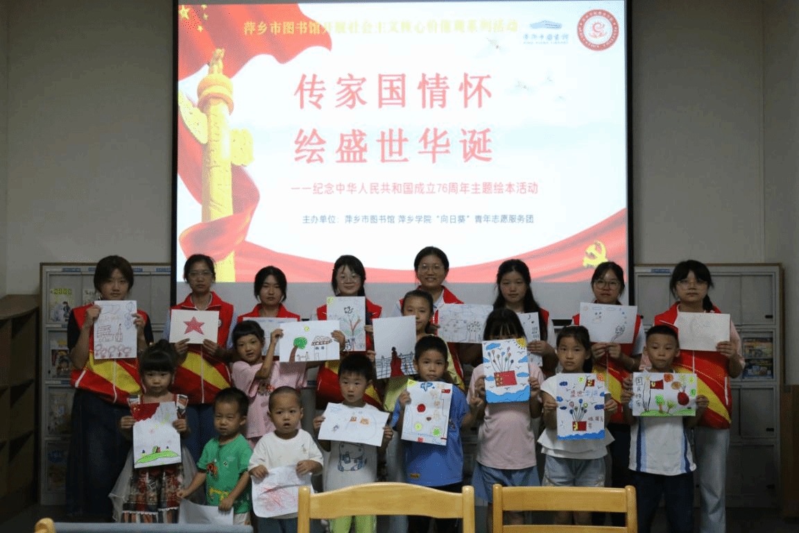 金秋送爽,丹桂飘香,在中华人民共和国成立76周年之际,萍乡学院“向日葵”青年志愿服务团于10月1日下午走进萍乡市图书馆,一场以“传家国情怀,绘盛世华诞”为主题的国庆志愿服务活动温情启幕,为孩子们带来了一堂生动有趣的“爱国启蒙课”。