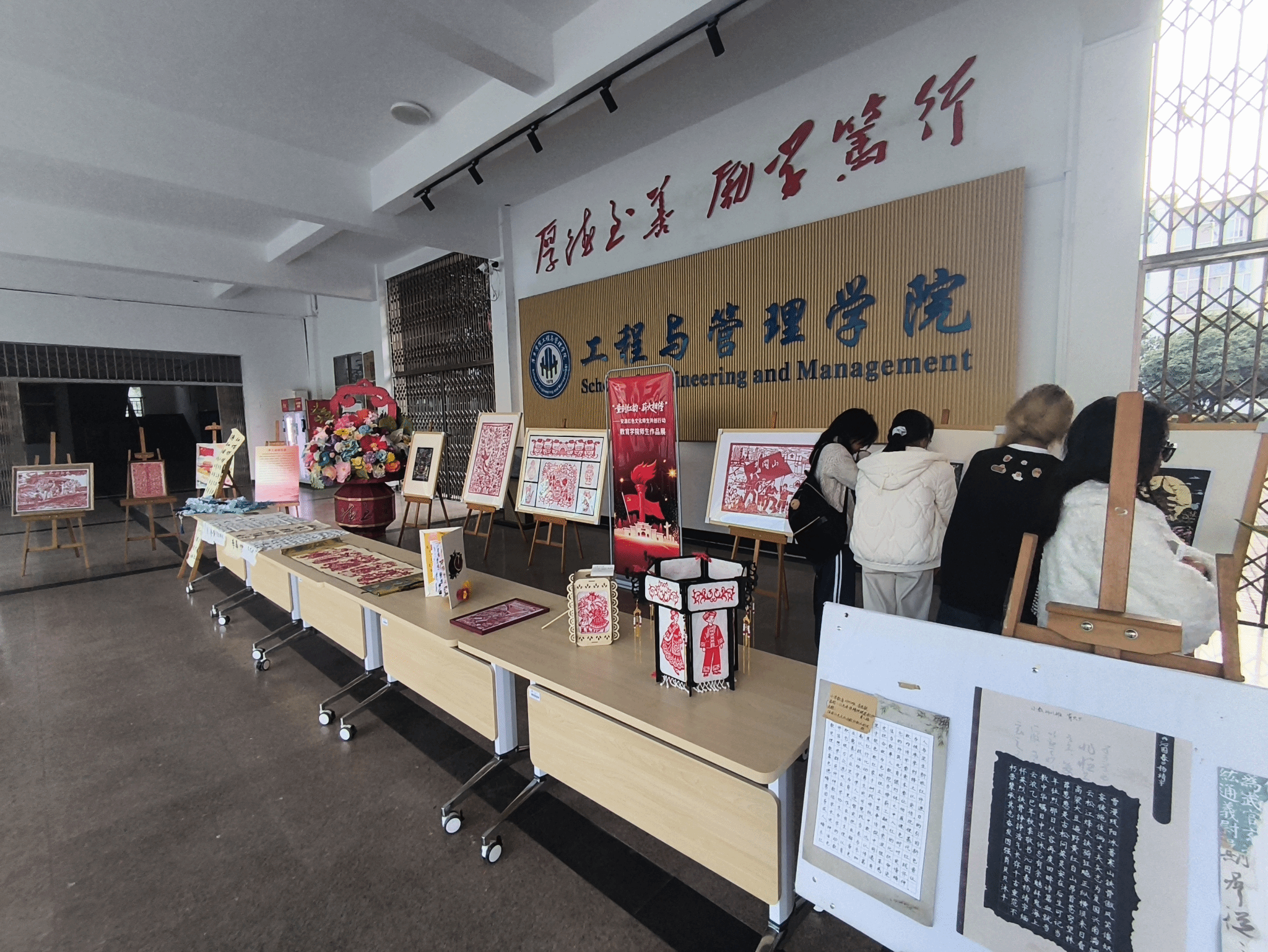 本次展览内容丰富、形式多样。除核心花篮作品外,还汇集了剪纸、绘画、书法、模型制作、环境创设等多种艺术形式的优秀作品。这些作品或再现历史场景,或刻画英雄形象,或抒发时代感悟,都凝聚着师生们对红色文化的深刻理解与独特创意,展现出教育学院将思想政治教育与专业教学实践深度融合的有效探索。
