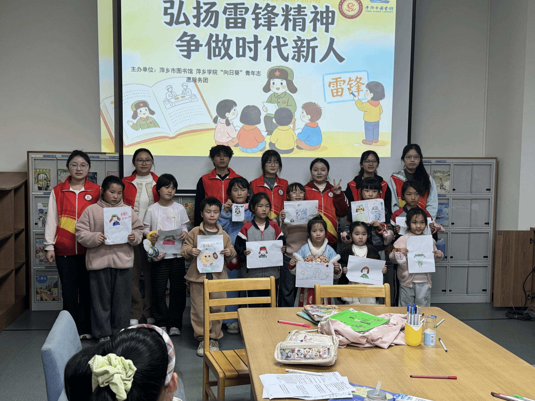 三月春风暖,雷锋精神传。为传承和弘扬雷锋精神,用青春行动践行志愿服务理念,萍乡学院“向日葵”青年志愿服务团于2026年3月15日在萍乡市图书馆组织开展“弘扬雷锋精神,争做时代新人”绘本志愿服务活动。此次活动通过趣味绘本分享、互动问答、手工绘画等形式,为孩子们打造了一场充满温情的春日阅读盛宴,让雷锋精神在书香中浸润童心,让奉献与友爱在陪伴中传递力量。