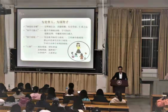 为筑牢学生的专业思想,增强职业使命,点燃学生对学前教育事业的热爱,2021年11月25日晚上19:00,学前教育学院诚挚邀请“全国教书育人楷模”“全国德育工作先进个人”“全国育人典型”“全国师德标兵”、萍乡中学副校长暨萍乡学院优秀校友王祖德为学前教育学院师生举行专题讲座。讲座主题为“做优秀教师,享幸福人生”,由学前教育学院党委副书记阳学文主持,学院2021级全体新生、2019级专升本学生代表及全体辅导员合计300余人现场聆听。