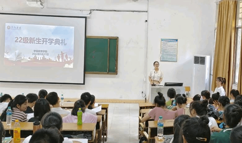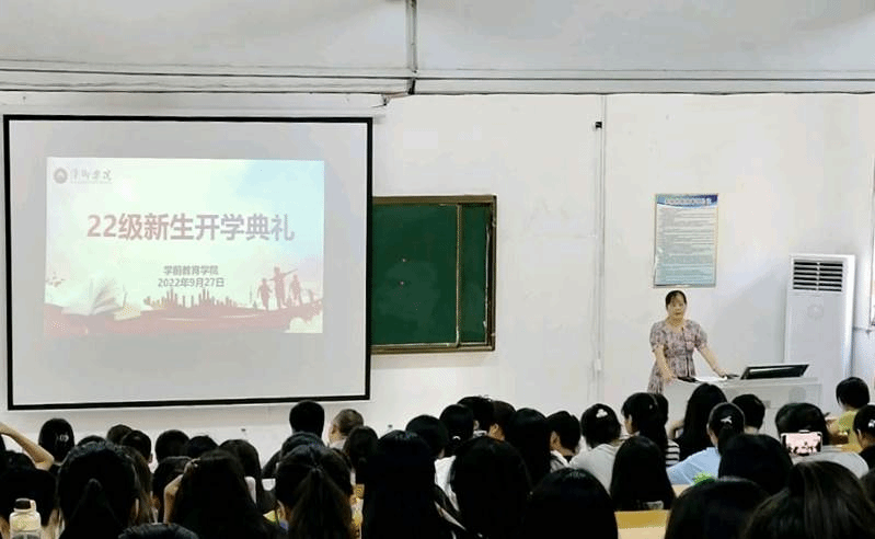 2022年9月27日14点,学前教育学院在多维楼一楼阶梯教室举行了2022级新生开学典礼,出席本次会议的有学前教育学院院班子成员及新生班级辅导员。本次会议由彭思思同学主持,我院200余名本专科新生共同参与。